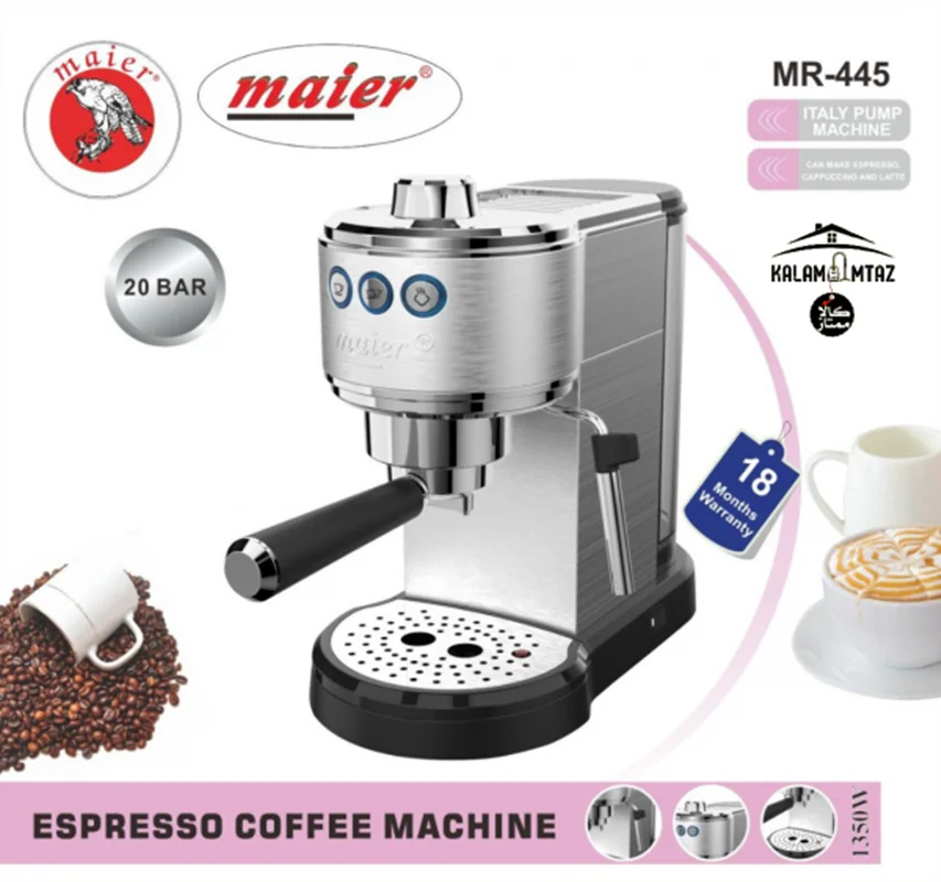 اسپرسو ساز مایر مدل ۴۴۵ از دستگاههای تهیه نوشیدنی بوده که قدرت و بازدهی بالایی داشته و نوشیدنی مورد نظر شما را در زمان کوتاهی آماده مینماید. این دستگاه بدنهای کاملا استیل دارد که به زیبایی آن افزوده و آن را مناسب برای هر دیزاینی کرده است. توان 1350 وات و فشار بخار 20 بار موجب میشود نوشیدنیهایی که میخواهید در زمان کوتاهی آماده شوند که در زمان شما صرفهجویی میشود. این اسپرسو ساز مجهز به تمپر قهوه بوده که میتوانید از پودر قهوه و همچنین پد استفاده نمایید و نوشیدنی باکیفیتی را نوش جان کنید. تمپر این دستگاه 2 خروجی قهوه داشته که میتوانید به صورت همزمان 2 فنجان نوشیدنی را آماده نمایید و برای خود و مهمانتان نوشیدنی فوقالعادهای تدارک ببینید. مخزن آب این دستگاه ظرفیتی 1 لیتری دارد که میتوانید 8 فنجان قهوه را با استفاده از آن تهیه کرده و به دلیل شفاف بودن مخزن در زمان نیاز میتوانید از جایگاه آن را خارج کرده و پر از آب نمایید.